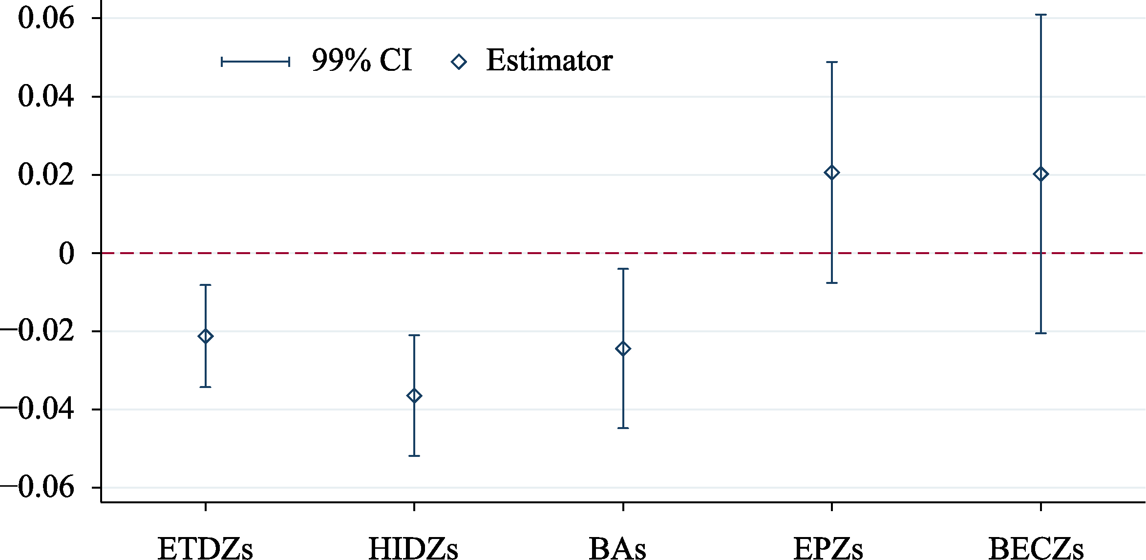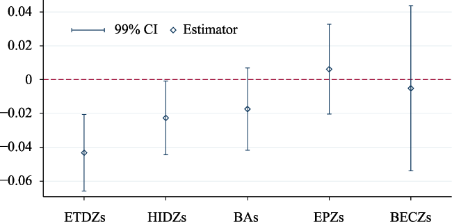 Figure C1 Heterogeneities among different types of special economic zones using Mono_b as the dependent variable |
