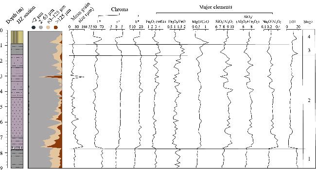 Table 2 Mean concentrations (wt.%) of major geochemical elements of sedimentary samples from different units of the JJZ archaeostratigraphic sequence |