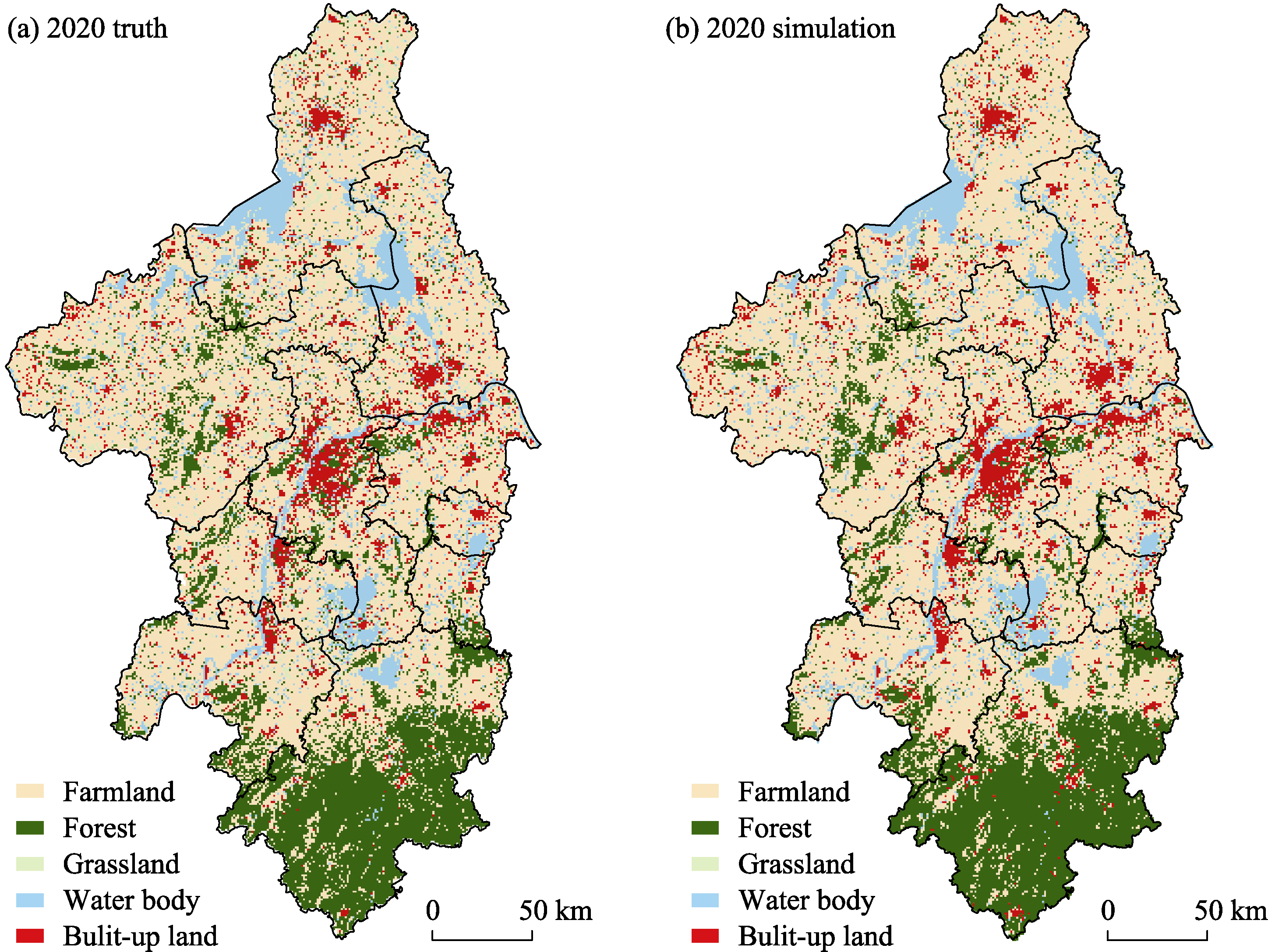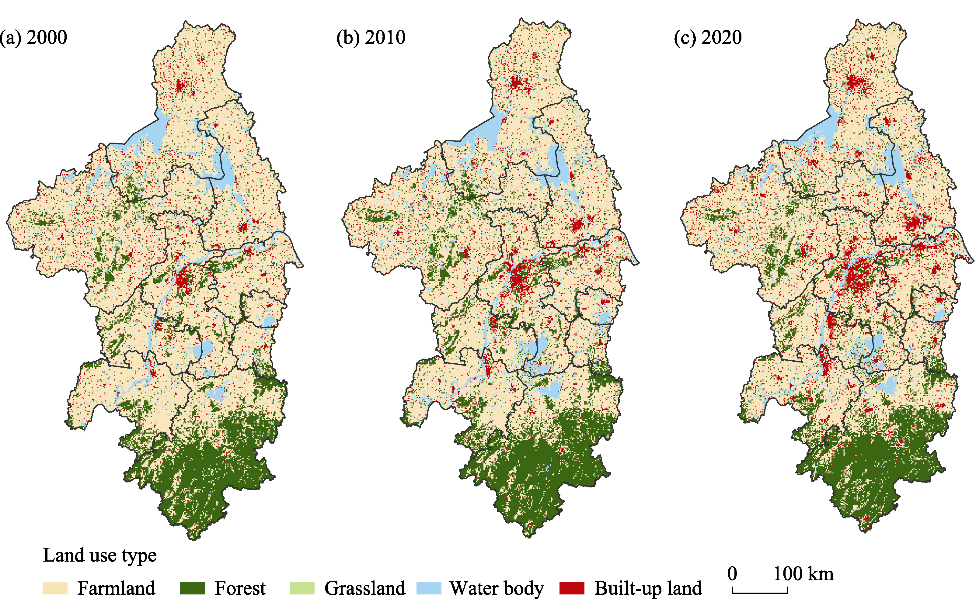 Land use in Nanjing Metropolitan Area (a. 2000; b. 2010; c. 2020)