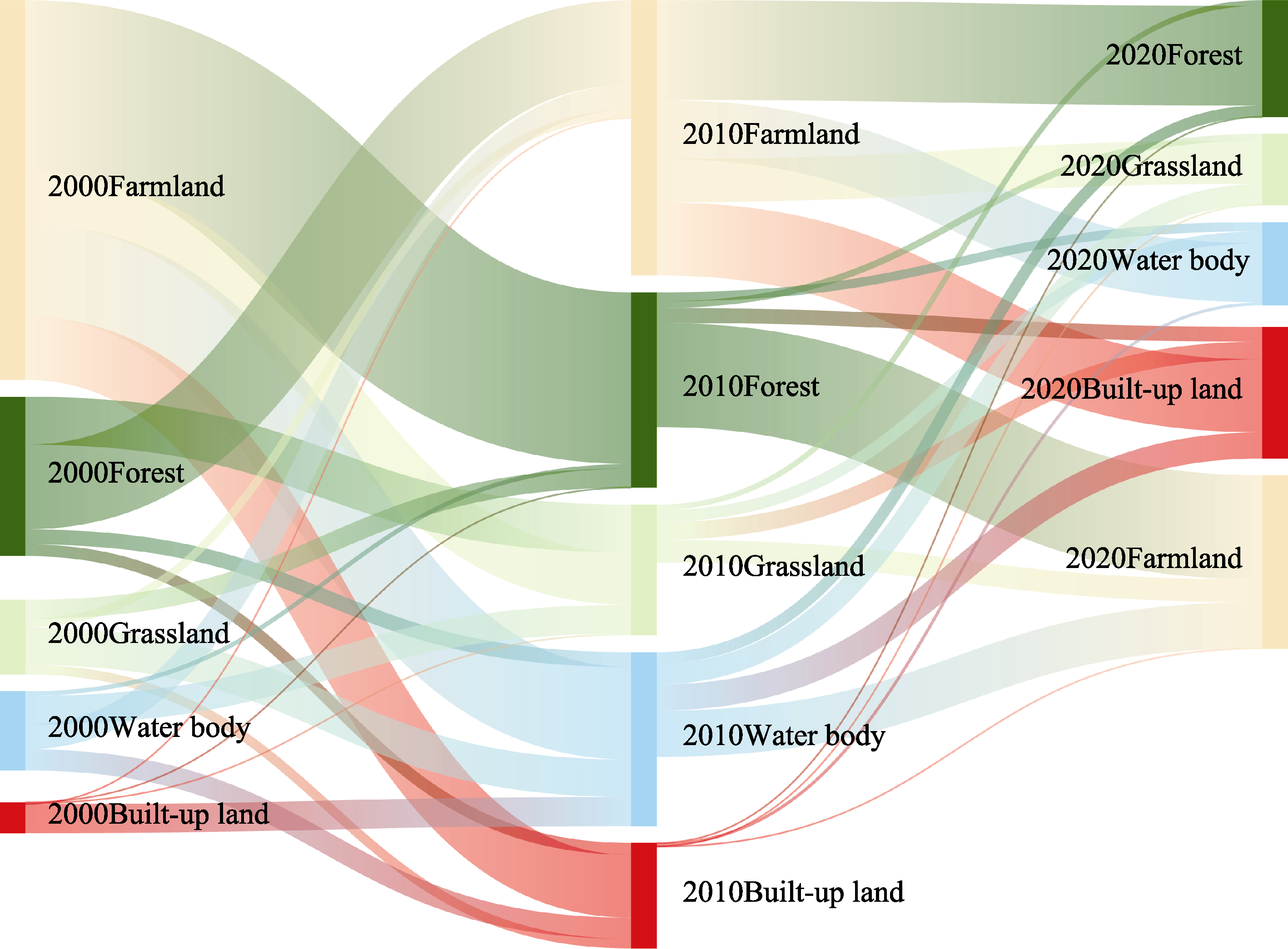 Transfer of land use change in Nanjing Metropolitan Area from 2000 to 2020