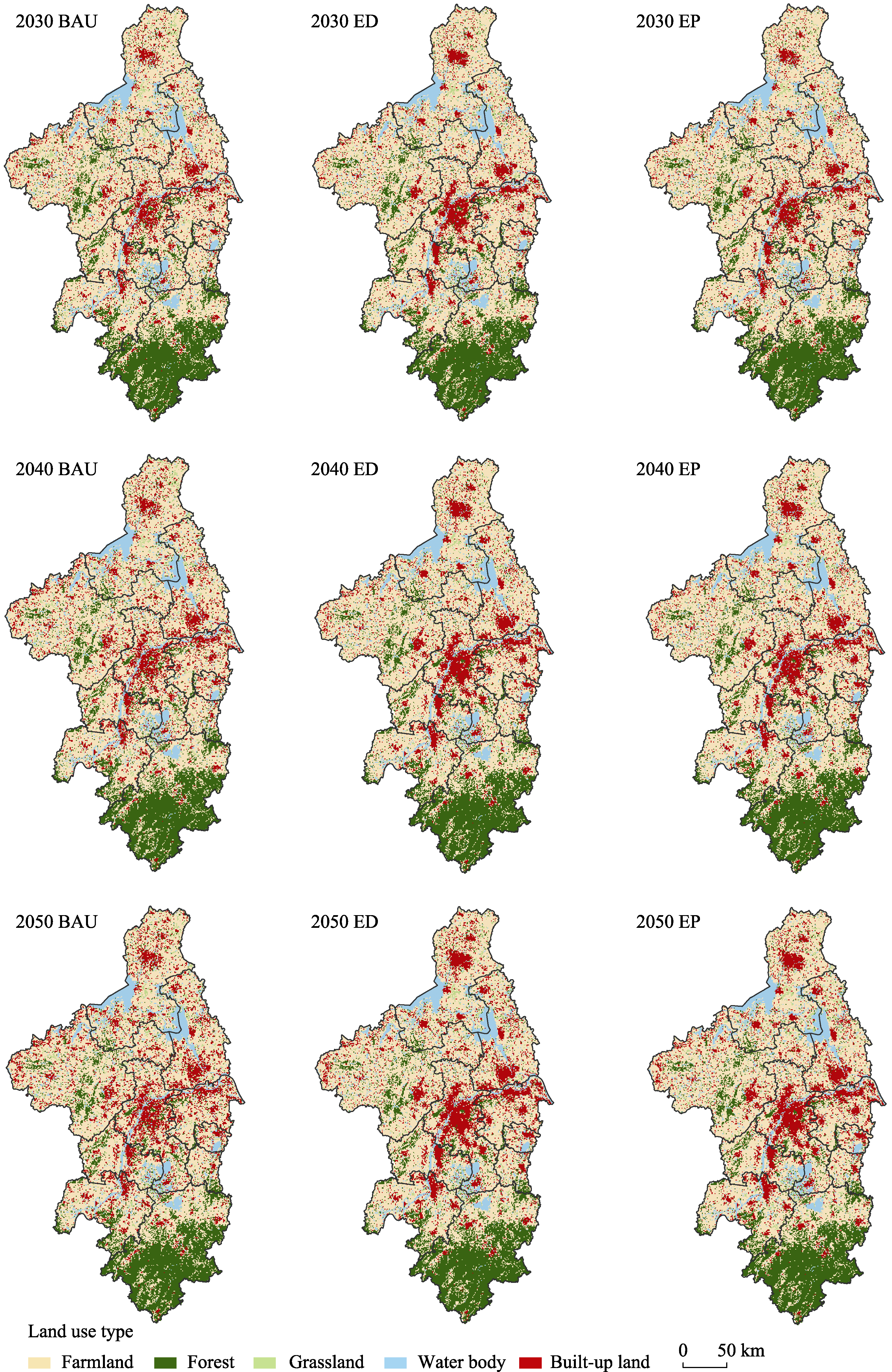 Land use of Nanjing Metropolitan Area under different scenarios in 2030-2050
