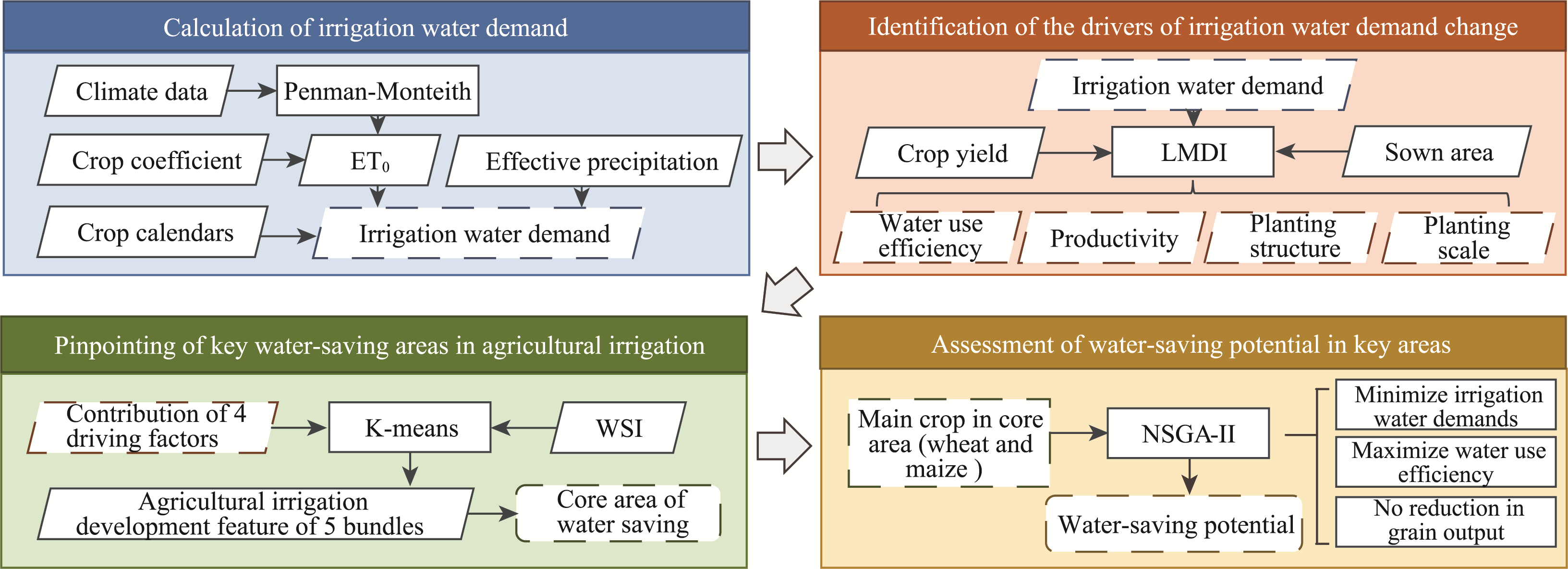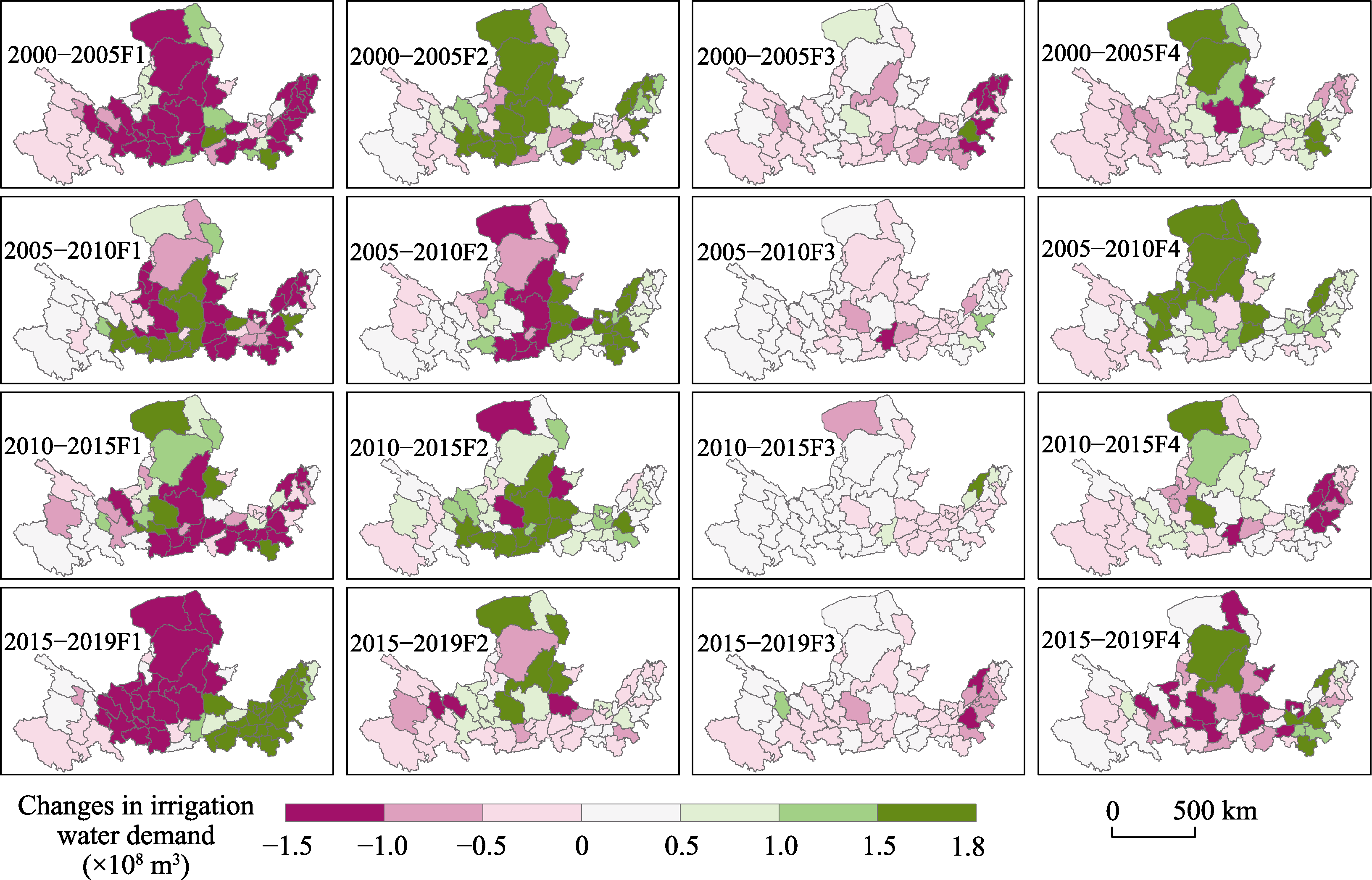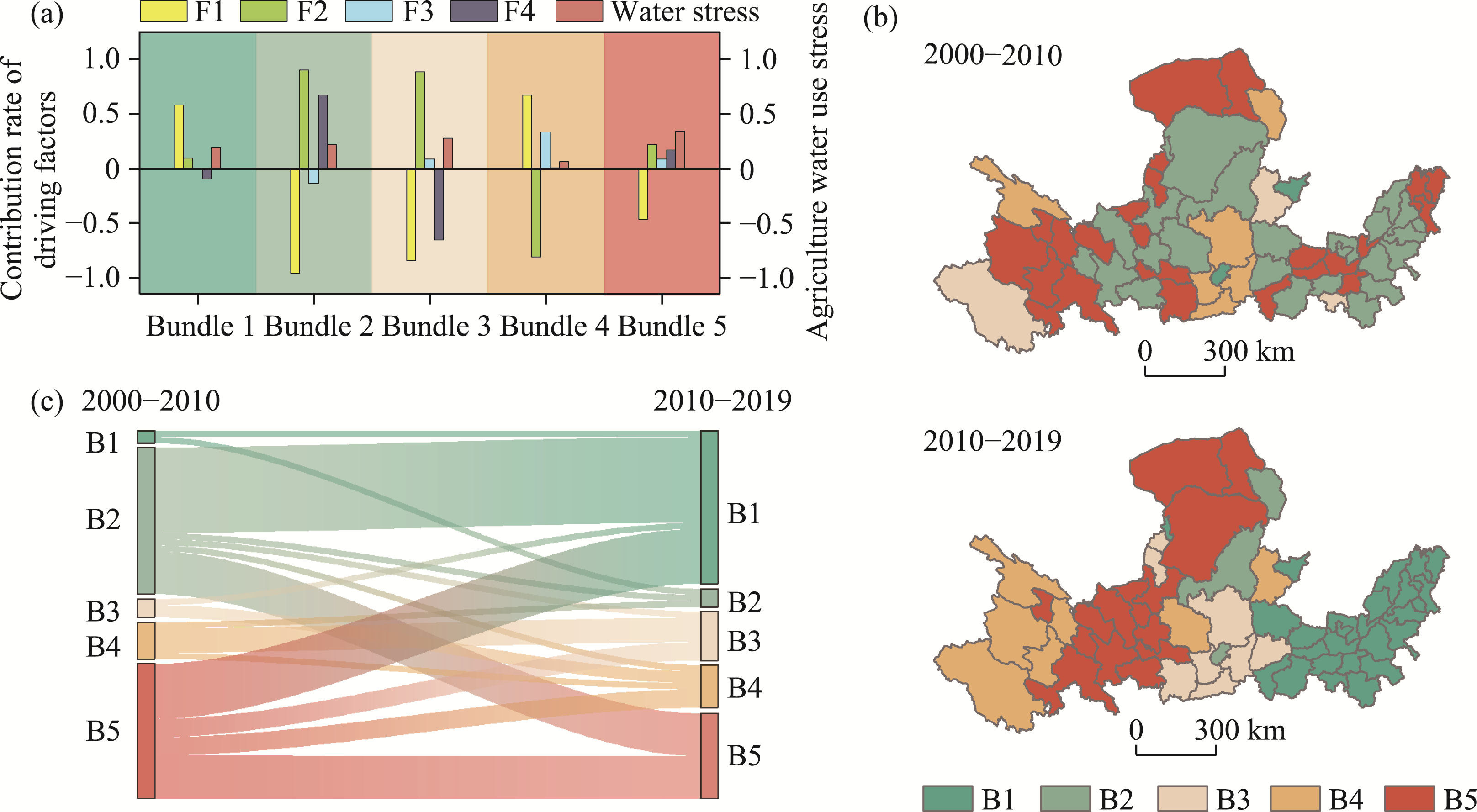 B1 Steady agricultural irrigation development Characterized by moderate water stress and balanced contributions from climate efficiency and yield factors.