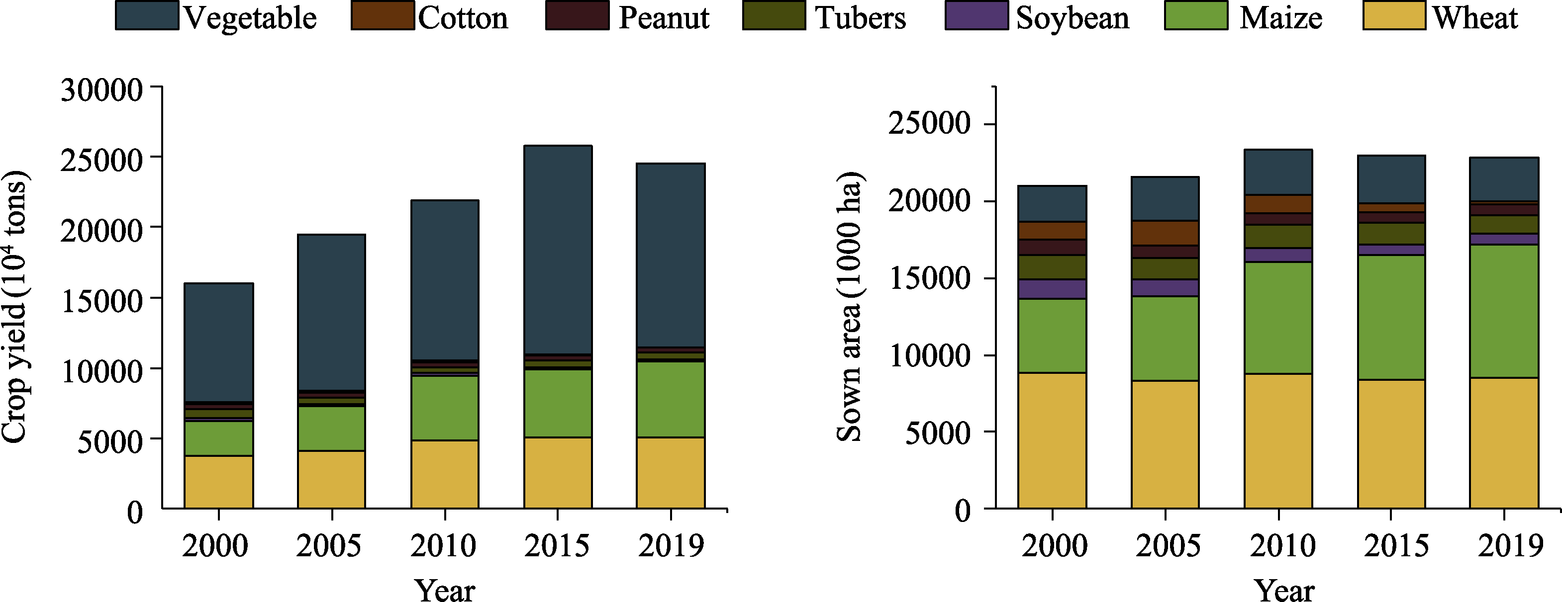Dominated by large-scale cultivated area expansion and yield-driven